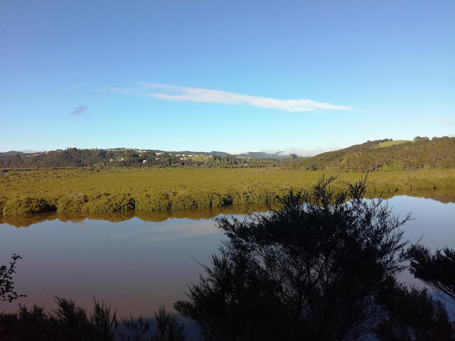 El dijous em desperte amb el soroll desagradable, estrident, cridaner, escandalós i no se quantes coses més, de l'alarma d'una altra de les xiques que dorm a l'habitació. A les 6 del matí!!!! Després d'això, em costa tornar a dormir, però aconseguisc tancar els ulls fins les 8. Acorde amb Manju trobar-nos a les 10 i canvie de hostel, vaig al mateix on està ella. És un poc més barat i està molt millor. Fem una ruta d'una hora i mitja o així per un bosc, i després agafem el ferri per a anar a l'altre costat, a Russell. Caminem per allí, dinem i ens sentem una estona a un banc al costat de la mar. Intercanviem experiències, i compartim il·lusions, pors, projectes, etc...Tornem a Paihia i ens estisem una a la platja. Per la pluja, l'aigua està marró i la veritat és que no atrau res a banyar-se. Així que ens conformem amb menjar un poc de fruita i relaxar-nos al sol. Ja cap a les 7 de la vesprada ens donem una dutxa i preparem un sopar "healthy" a l'hostal. Ha sigut un dia agradable, i ens acomiadem amb un abraç, "thank you for the time shared" i un "see you soon".